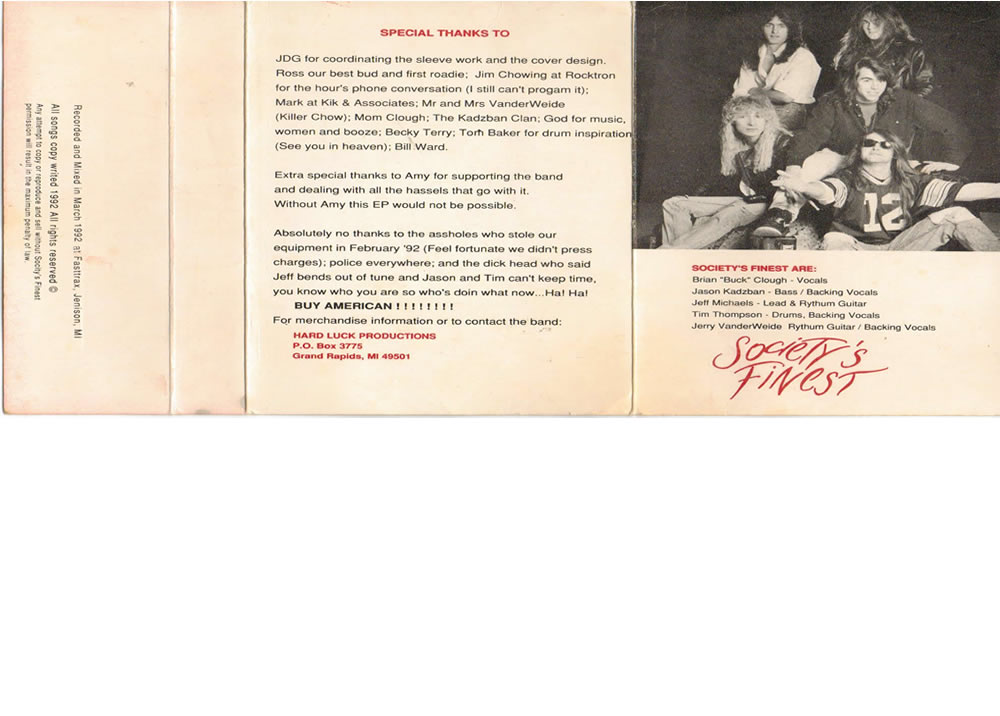 This section of the web is dedicated to the band Society's Finest from Grand Rapids Michigan back in 1992.
